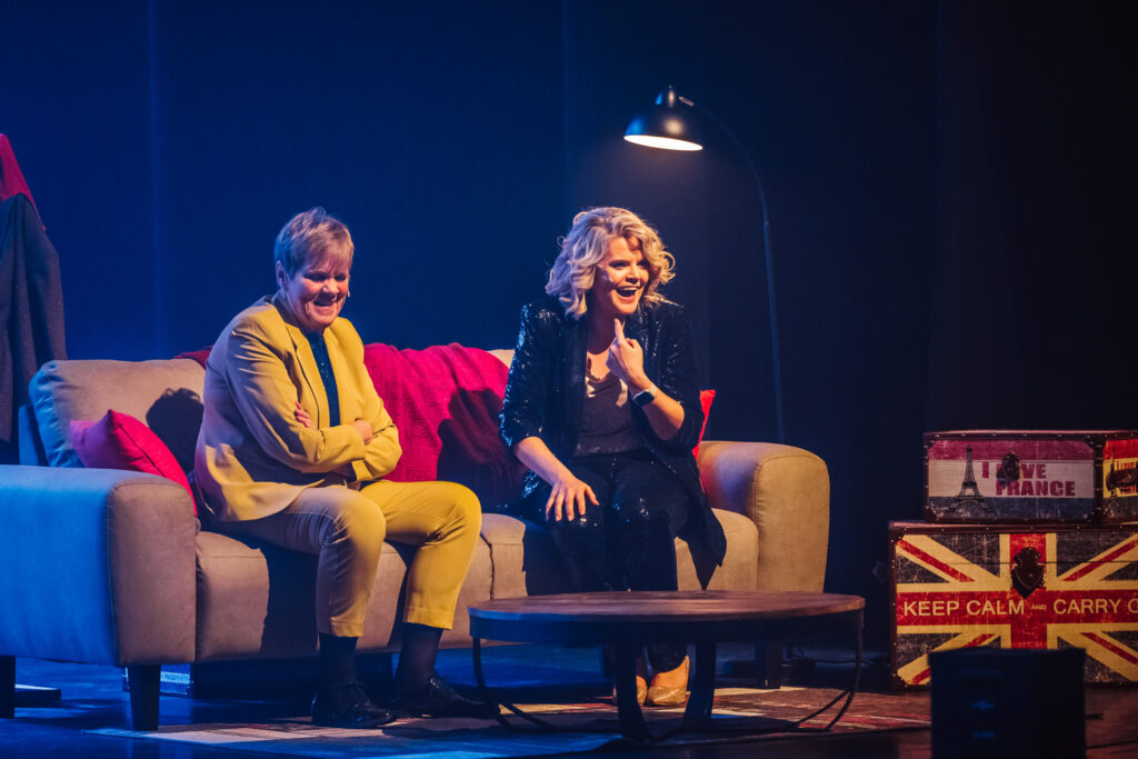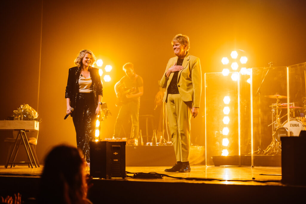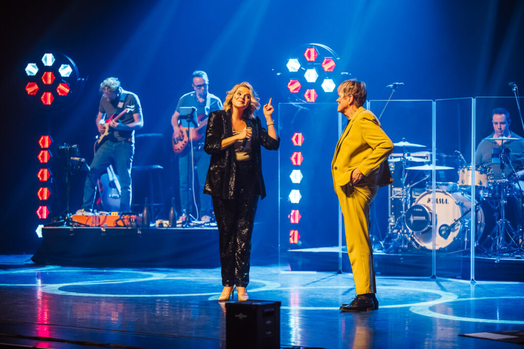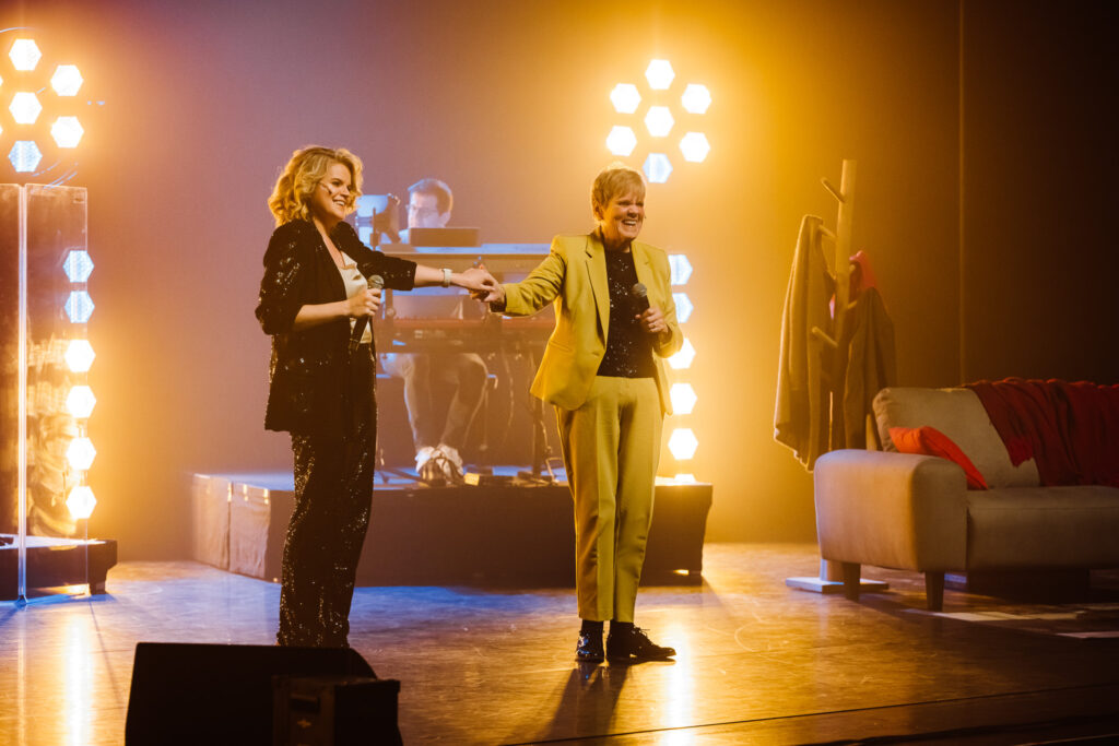 De ijzersterke band tussen moeder en dochter wordt des te meer duidelijk wanneer ze de bezoeker meenemen terug in de tijd en het lijkt alsof deze middenin één van hun Facebook Life-sessies is terechtgekomen. Die memorabele sessies zorgden tijdens de pandemie vaak voor licht in de duisternis voor duizenden mensen. “Dat was een enorm succes toen. Er keken soms meer mensen dan er in het grootste theater van Vlaanderen binnen kunnen! Ze blijven er ons ook naar vragen, maar met de optredens die terug volop draaien, vinden we daar onmogelijk de tijd voor. Vandaar kwam ook het idee om een theatertournee te doen”, verklaart Celien. Een succesformule die hier dus onmogelijk kon ontbreken. De DNA-strengen, mooi opgedeeld in categorieën, gaven een duidelijke omkadering binnen de hamvraag: Lijken wij nu echt zo hard op elkaar? Voor Margriet is het alvast duidelijk: “Het is een vraag die we ons ook al vaak hebben gesteld. Ook al hebben we onze verschillen natuurlijk, dat is ook logisch, denk ik dat we moeten concluderen dat we onoverkomelijk een groot stuk DNA delen (lacht). Celien zegt soms dat ze net mij is als ze op het podium staat. En als ik haar zo bezig zie, vind ik dat wel een compliment. Om zij aan zij met mijn dochter dit te mogen doen, dat is zo bijzonder. We zijn meer verbonden dan ooit tevoren. Wat heb je als moeder nog meer nodig om gelukkig te zijn?”