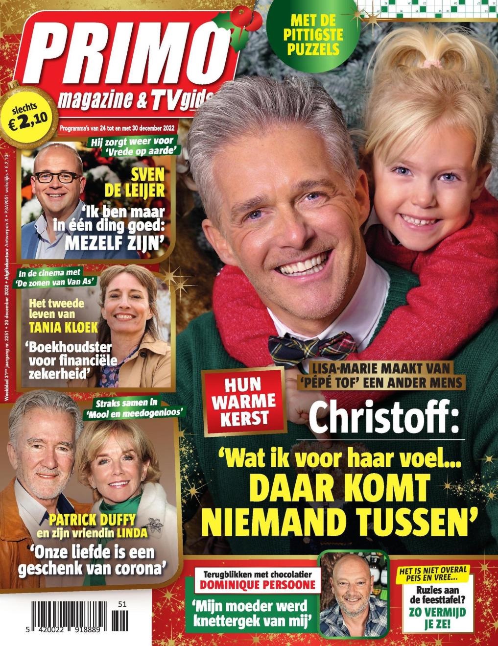 Weekblad Primo pakt uit met een hartverwarmende cover deze week: Christoff poseert samen met zijn petekindje Lisa-Marie, dochter van zijn zus Lindsay. In het blad verteld de zanger honderuit over de speciale band die hij heeft Lisa-Marie, en hoe zij van ‘pépé Tof’ een ander mens maakt. ‘Wat ik voor haar voel, daar komt niemand tussen‘, klinkt het. Klik hier om de volledige cover van Primo te bekijken.